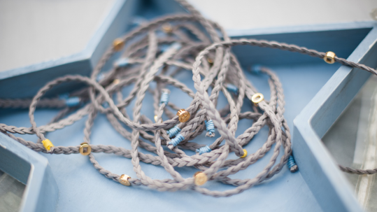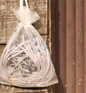 Όταν μας ρωτάνε ποιο μαρτυρικό μας αρέσει περισσότερο, είναι δύσκολο να ξεχωρίσουμε κάποιο. Η μαμά Δήμητρα, είναι ένας ιδιαίτερα δημιουργικός άνθρωπος και ήταν χαρά μας να συνεργαστούμε. Για μαρτυρικά της βάπτισης του γιου της επέλεξε την πλεξούδα από σουέτ σε ανοικτό γκρι χρώμα, με συνδυασμό από διάφορα χρώματα για τις άκρες. Το αποτέλεσμα ήταν υπέροχο. Οι καλεσμένοι είχαν τη δυνατότητα να επιλέξουν το χρώμα της αρεσκείας τους που απ' ότι μάθαμε, το φοράνε ακόμα!...