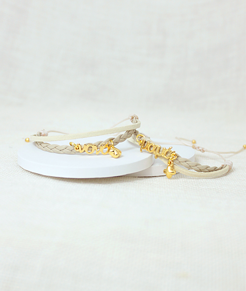 Διπλό μαρτυρικό βραχιόλι μαμά νονά. Από σουέτ κορδόνι, δερμάτινη πλεξούδα και επιχρυσωμένα στοιχεία. Δέσιμο με αυξομείωση και επίχρυσες λεπτομέρειες στις άκρες.