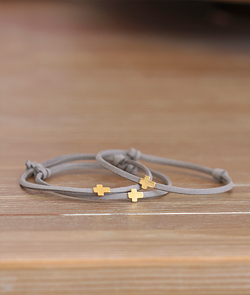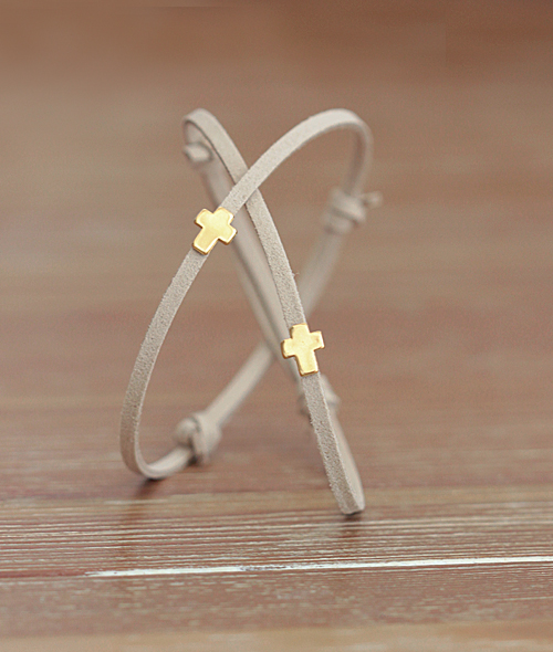 Μαρτυρικό βραχιόλι από σουέτ κορδόνι με χρυσό σταυρό σωληνάκι. Δέσιμο αυξομείωσης με κόμπους. Διαθέσιμα χρώματα κορδονιού: λευκό, ροζ, μπεζ ανοικτό, μπεζ σκούρο, γκρι, navy blue.