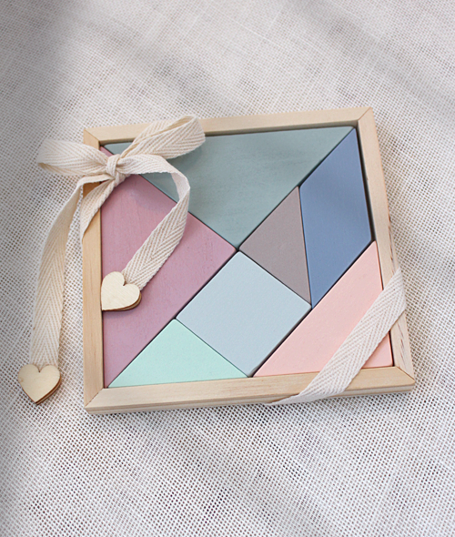 Παιδική μπομπονιέρα βάπτισης ξύλινο παζλ σε παστέλ χρώματα.