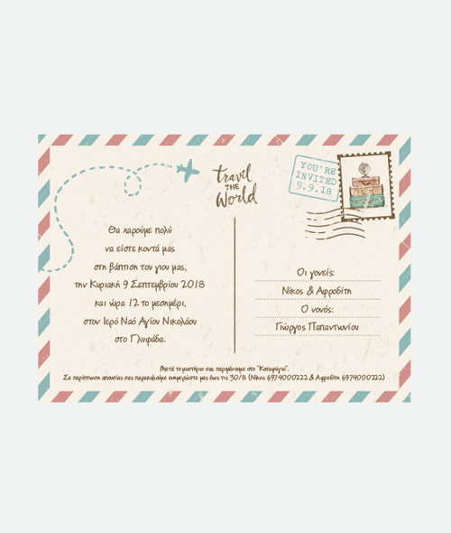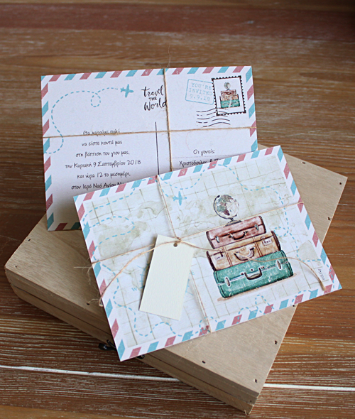 Ετικέτα: vintageΠροσκλητήριο βάπτισης travel the world τυπωμένο σε πολύ χοντρό χαρτί και δένεται με κορδόνι και ετικετάκι