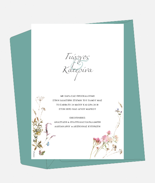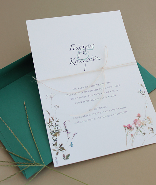 Ετικέτες: floral, natureΠροσκλητήριο γάμου άγρια λουλούδια σε απαλούς χρωματισμούς.