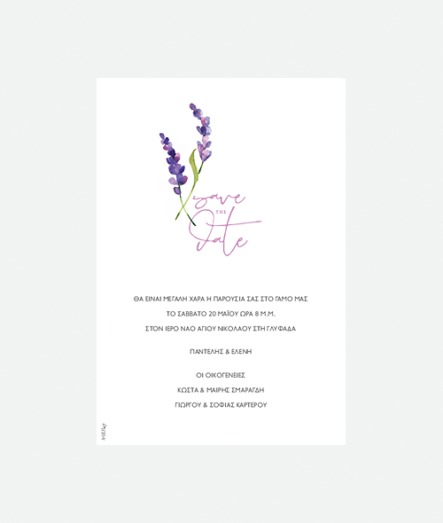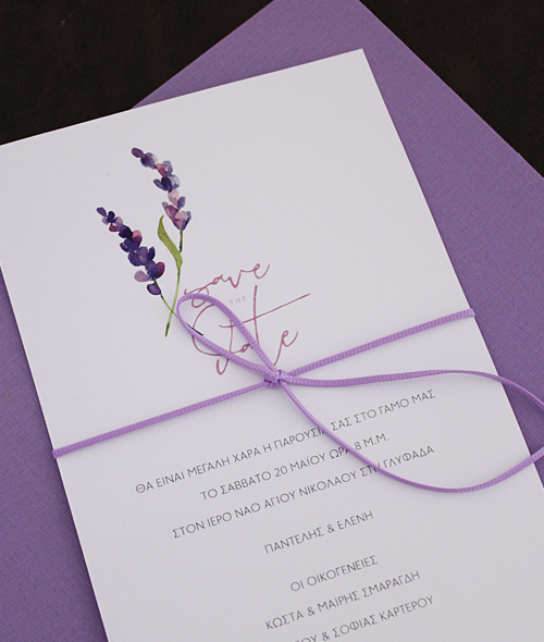 Ετικέτα: watercolorΠροσκλητήριο γάμου λεβάντα save the date