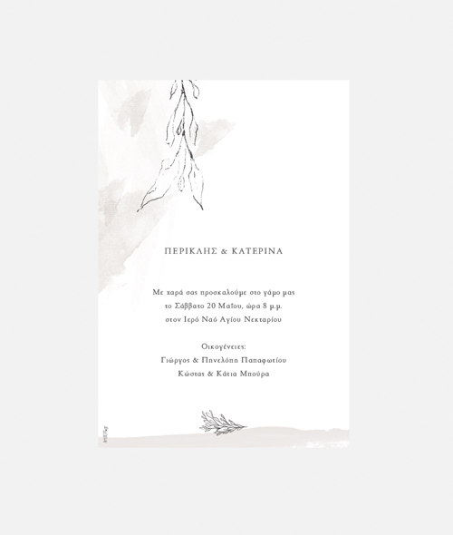 Προσκλητήριο γάμου σκίτσα άνθη σε απαλό ουδέτερο φόντο με χρώματα ακουαρέλας. Τα προσκλητήρια ArtBeat είναι σχεδιασμένα για να μπορούν να προσαρμοστούν στις δική σας χρωματική παλέτα. Επικοινωνήστε μαζί σας για να δημιουργήσουμε μαζί το προσκλητήριο που επιθυμείτε.