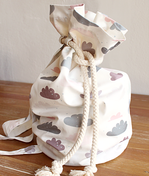 Σάκος με λουριά από τυπωμένο ύφασμα και χοντρό οικολογικό κορδόνι